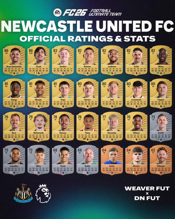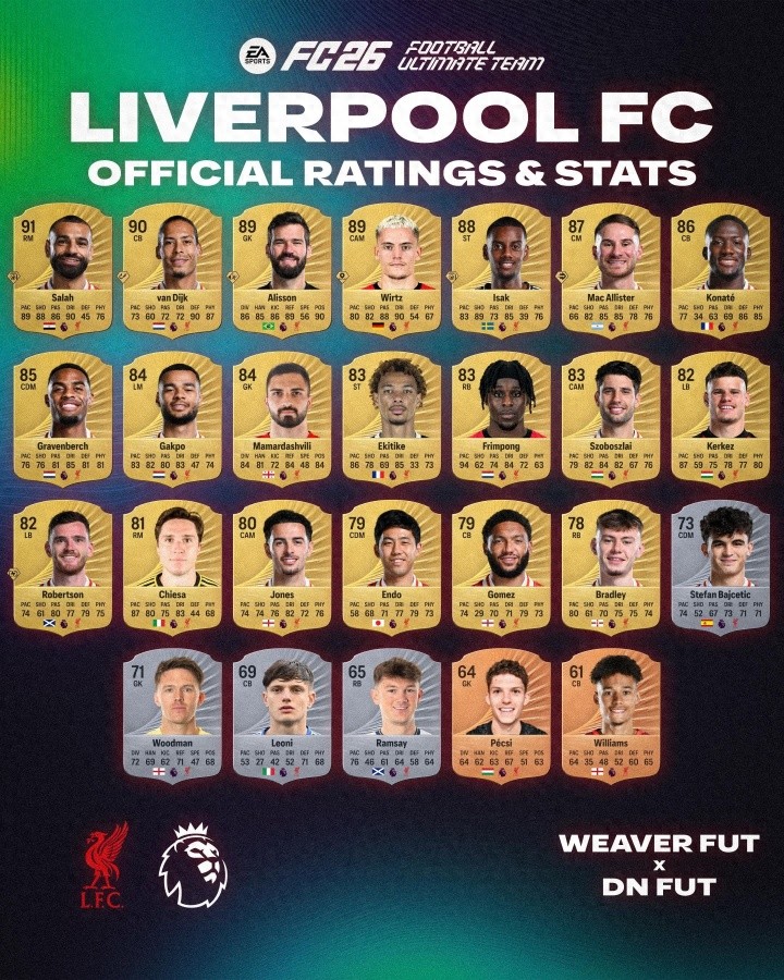 Tin tức ngày 7 tháng 9, điểm số của các cầu thủ từ các đội bóng ở Premier League khác nhau của trò chơi bóng đá FC26 đã được phơi bày, trong đó Salah đã dẫn đầu Premier League với số điểm 91, và Van Dijk, Rodri và Haaland cũng nhận được 90 xếp hạng.