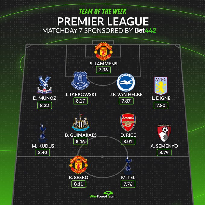 HUPU ngày 6 tháng 10. WhoScored đã công bố một danh sách vòng 7 của Premier League hôm nay, với Rice dẫn đầu, và Seshko và Lamens được chọn.