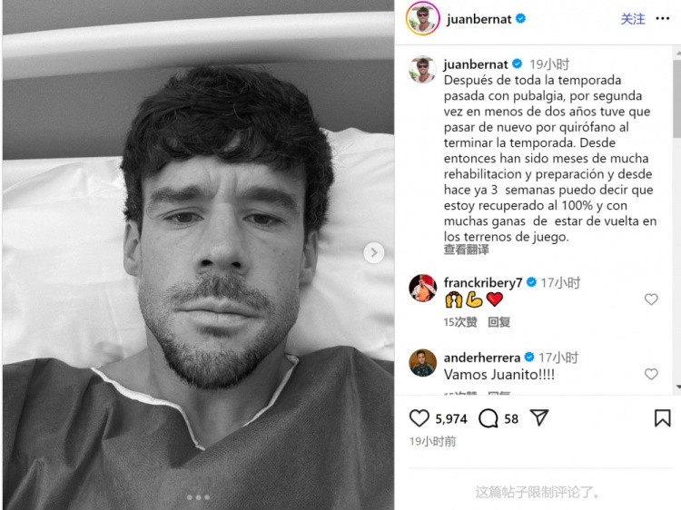 Bernat viết: "Tôi bị viêm xương mu ở mùa giải trước. Trong vòng chưa đầy hai năm, tôi đã phải phẫu thuật vào cuối mùa giải lần thứ hai. Trong những tháng tiếp theo, tôi đã dành rất nhiều tâm sức cho việc tập luyện và chuẩn bị phục hồi chức năng. Bây giờ tôi đã bình phục hoàn toàn và rất nóng lòng được trở lại thi đấu."