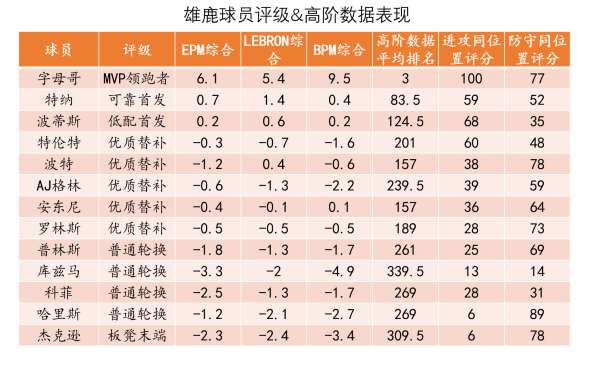 Vấn đề thứ hai là sự cân bằng của hành vi phạm tội và phòng thủ. Trong giai đoạn cuối cùng của vòng play-off mùa thứ 25, khi Lillard được biết là có thể làm rõ, các dòng sông đã từng tìm thấy một đội hình của các chữ cái + Portis + game bắn súng ba lùi ở bên ngoài, có tác dụng rất tốt, nhưng đội hình này có những mối đe dọa tấn công lớn và các vấn đề phòng thủ. Từ bảng trên, chúng ta cũng có thể thấy rằng hầu hết người chơi xoay của Bucks đều có vấn đề về hành vi phạm tội và phòng thủ không đồng đều. Ví dụ, Portis và Trent có hỏa lực tấn công mạnh mẽ, nhưng ảnh hưởng phòng thủ của họ thấp hơn mức trung bình của cùng một vị trí; Jackson, Harris, Hoàng tử và các cầu thủ khác có ảnh hưởng phòng thủ tuyệt vời, nhưng họ là những người chơi cấp độ lỗ đen ở cuối cuộc tấn công. Làm thế nào để cân bằng hành vi phạm tội và phòng thủ của mỗi đội hình là đủ để các nhân viên huấn luyện để giành được bộ não của họ!